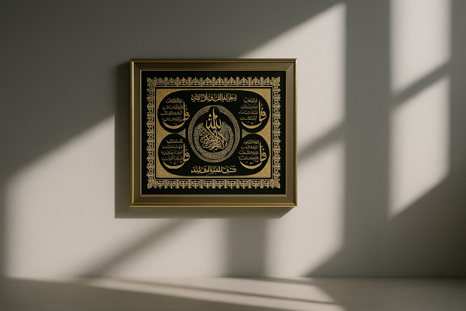 URAH; AL-KAFIRUN, Al-IKHLAS, AL-FALAQ AND AN-NAS SLAMIC WALL ART 4 QULS.